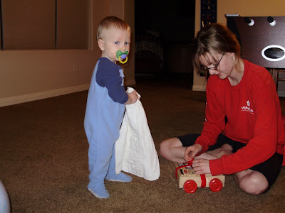 We had saved some large boxes and Sadie and Lindsey did some marvelous things with them. They created a multi-room "house" to play in. They created connections and "halls" to connect them together. They also made a stand alone mailbox and Christmas tree as added features. They colored and ate and read in that house - we even had some battery lamps they took inside so they could see better. It was a real hit!